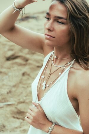 Ces perles prestigieuses sont sublimées par des hématites galvanisées, dont l’éclat moderne et la durabilité renforcent l’élégance du bijou. Hypoallergéniques et résistantes à l’eau, elles allient style et praticité.